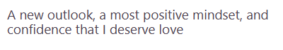 Now, I love the life I've built and I feel ready to continue taking steps in my love journey. I am more focused, intentional and hopeful.