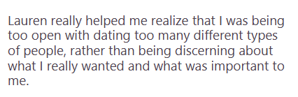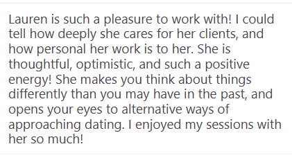 Before working with Lauren, I was in a rut when it came to dating. I was anxious about it, feeling like time was passing and I didn’t know what to do next.
