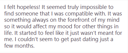 I had not been dating or thinking about dating in over 3 years. In the past, I didn't take dating/love seriously.