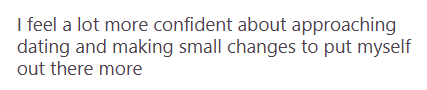 After just four months, I feel great. I'm now able to be present (not thinking 10 steps ahead), be in my own energy (and not rattled by how I "should" be), and be much clearer with myself on what qualities I desire in a partner (not a checklist society told me to look for).